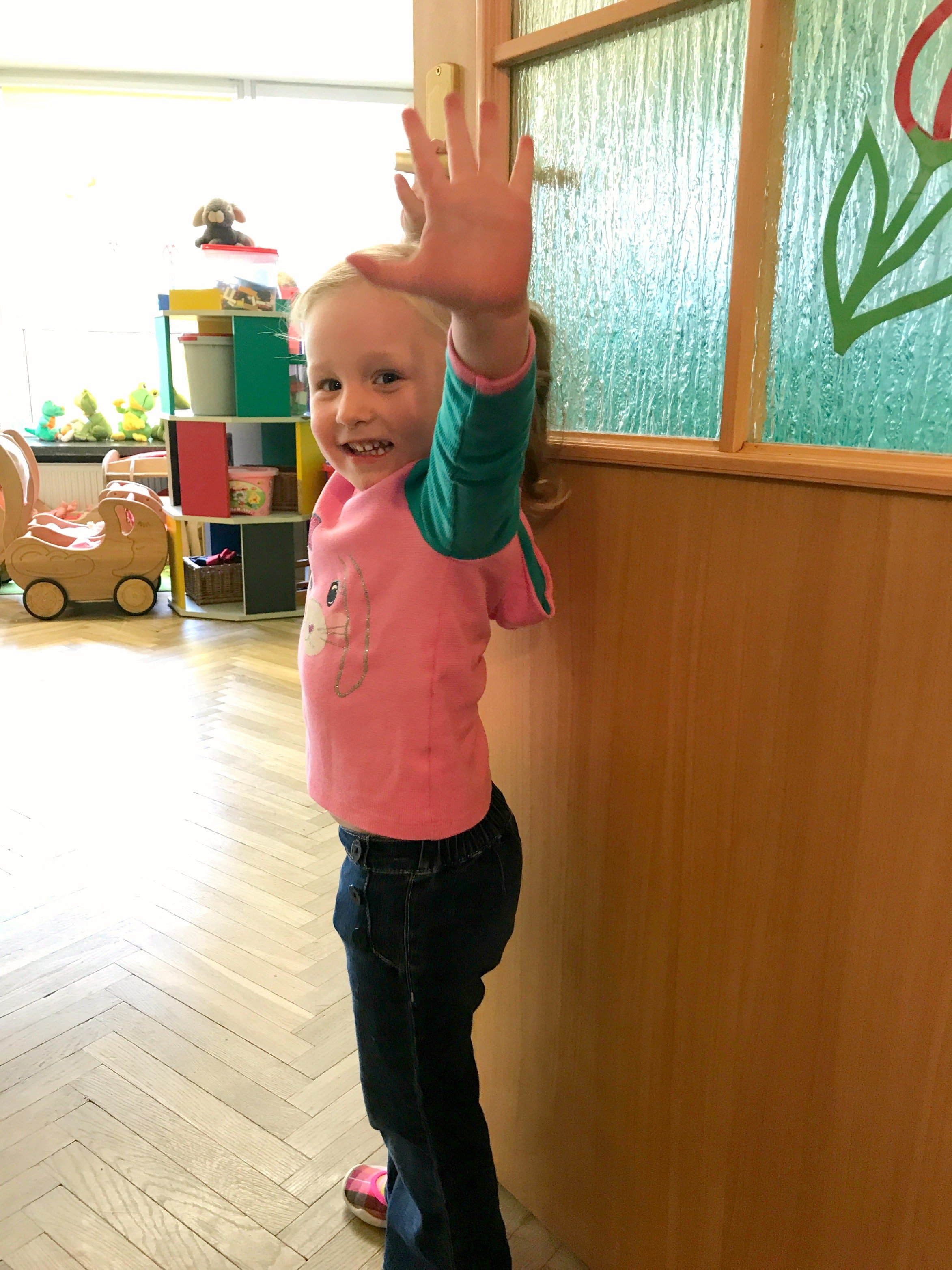 Ivy on her first day of preschool: not a tear in sight