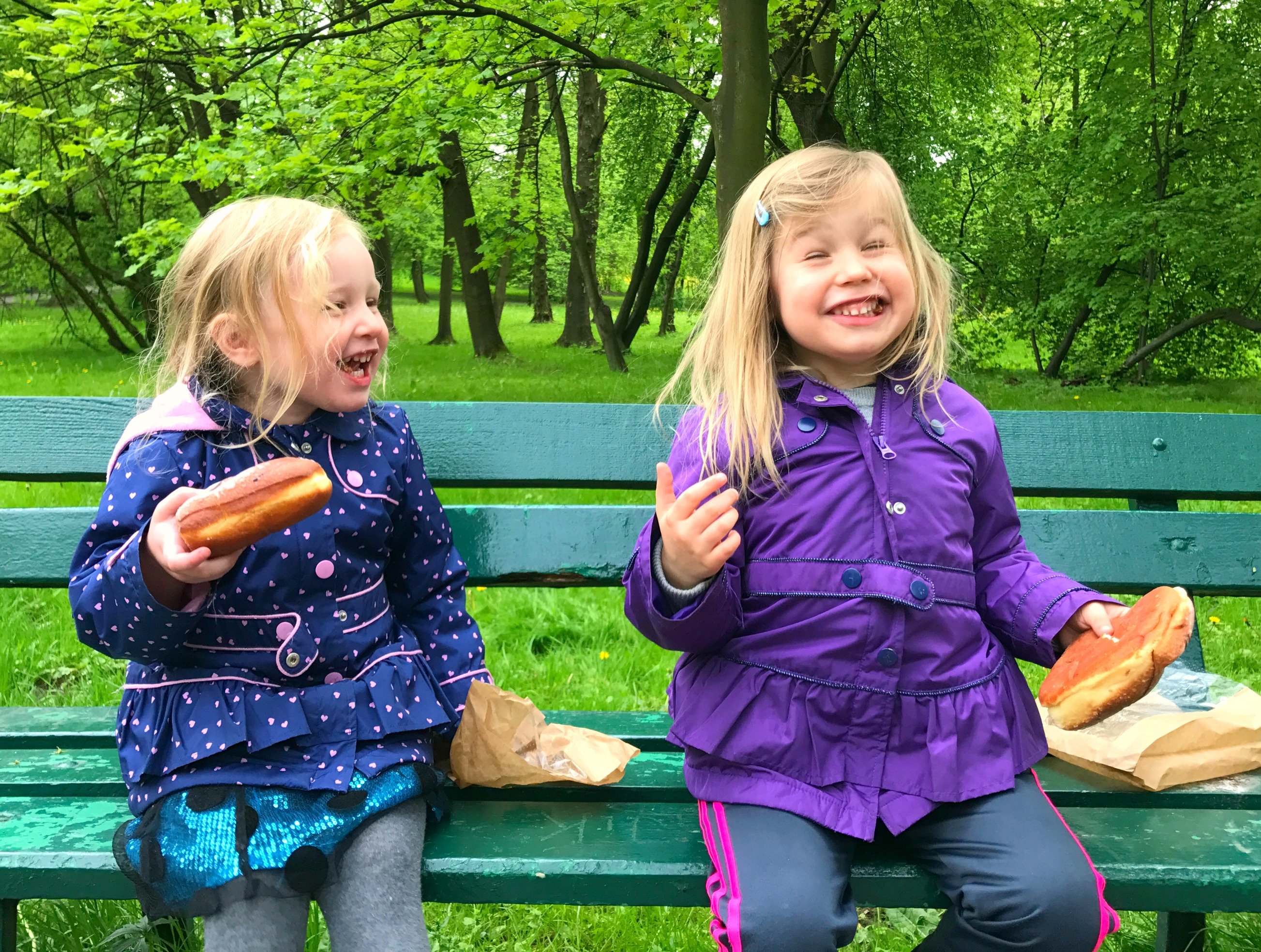 Enjoying chocolate paczki – a national Polish treat – after preschool one day