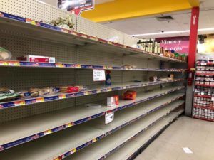 On Sunday September 17th, I woke up before the rest of the family to buy more supplies, since we had donated much of what we had. The first stop was WalMart. Although it was only 8:15 a.m., they were already out of bottled water. I bought a few things and went to Sams Club. There was no bottled water there either, but I bought batteries for our flashlights. I went to Walgreens next: no water there either. At Ralph’s, a local grocery chain, I was able to buy one of the last five cases of water left. I went home and started washing clothes. By 5:00 p.m., Hurricane Maria had formed as a Category 1.